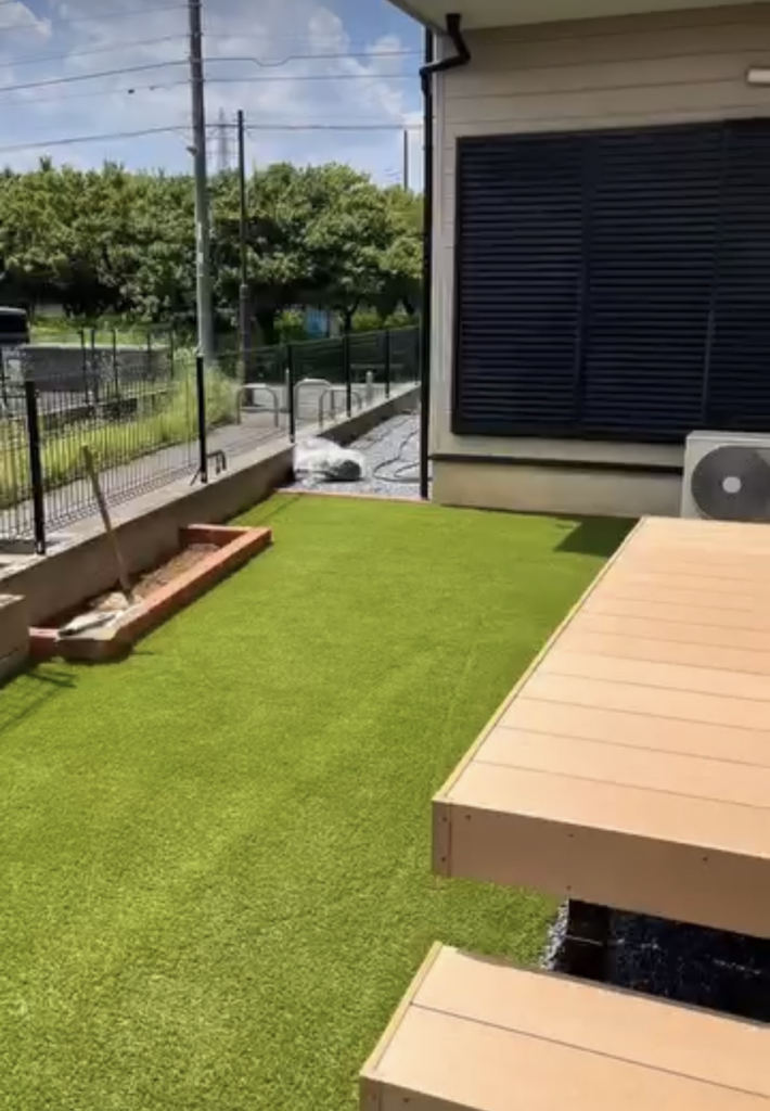 そして、人工芝やウッドデッキを設置!!