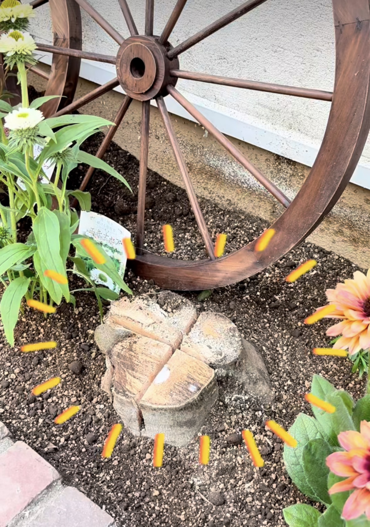 残ってしまった切り株には、ガーデニンググッズで見栄えよく目隠し!